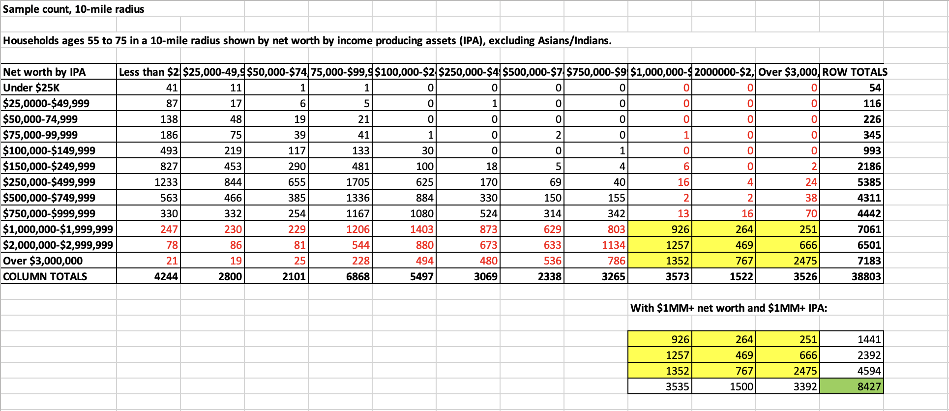 Epsilon generates net worth and Claritas (a completely separate source), generates income producing assets (IPA). We purchase only those names where BOTH sources say they’re wealthy: